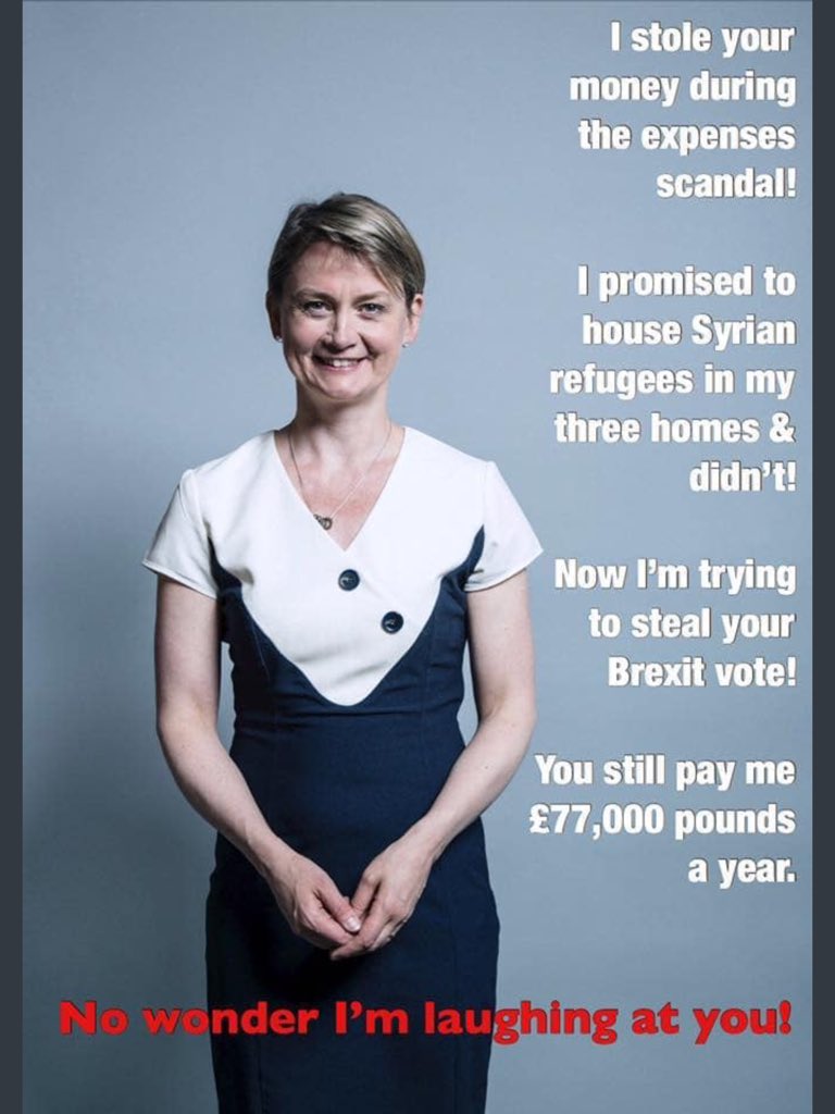 A poster from a few years ago, but Yvette Cooper is still there, still an MP, still getting paid (more now, about £85,000, plus huge expenses); she also grabs more by being Chair of a Commons select committee; and her Bilderberg-attending husband, Ed Balls, also once an MP, is coining money in business. They own buy-to-let properties as well. Parasites.