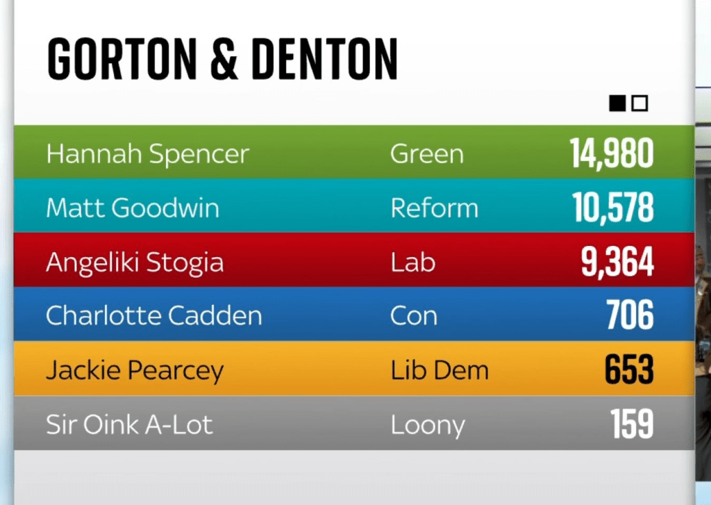Contrary to what the pseudo-“Green” supporters on social media are saying, the big loser at Gorton and Denton was not Reform but the Labour Party.