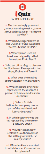Some quite difficult questions again this week. I managed 6/10, thus beating political journalist John Rentoul, who scored 4/10. I knew the answers to questions 3, 4, 5, 7, 8, and 10.