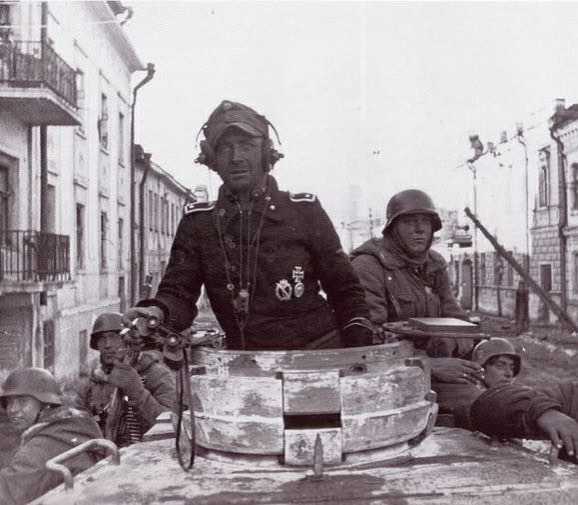 [Kharkov, Ukraine, 1943; tank commander of 3rd SS-panzerdivision Totenkopf; https://en.wikipedia.org/wiki/3rd_SS_Panzer_Division_Totenkopf]